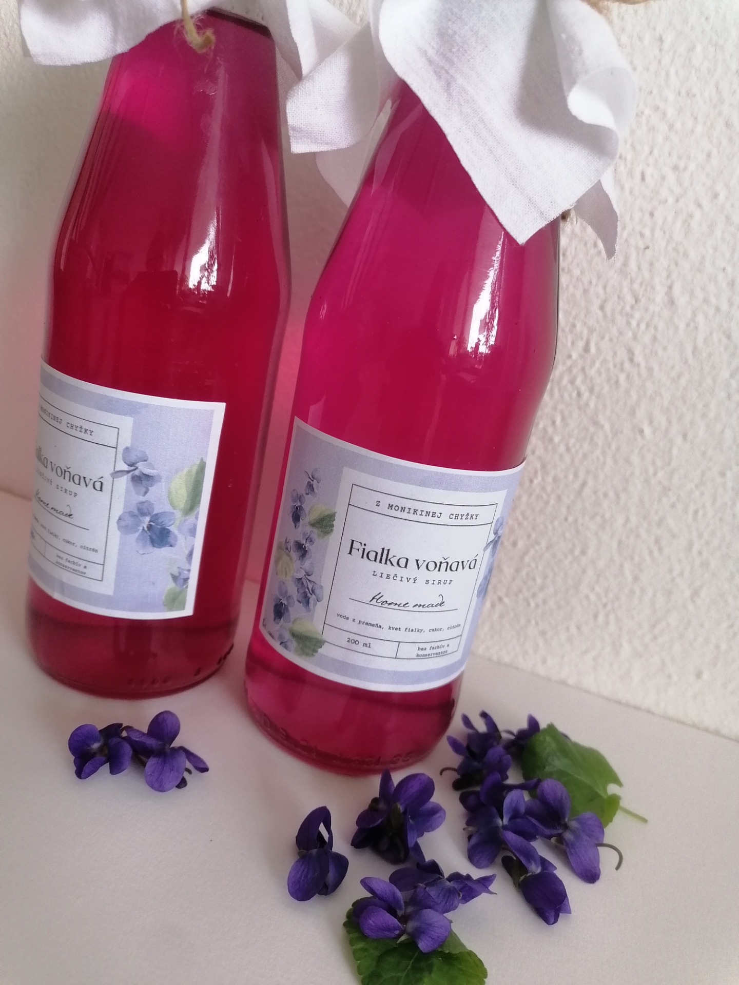 Kvety fialky voňavej, pramenitá voda, cukor, citrónová šťava